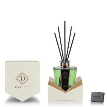 La Fragranza INFINITO nell'iconico Decanter Impero e la Box Scultura fatta a mano, conduce nella dimensione del Mito Danhera. Uno scrigno prezioso di emozioni profumate, per un Arredo Olfattivo leggendario.